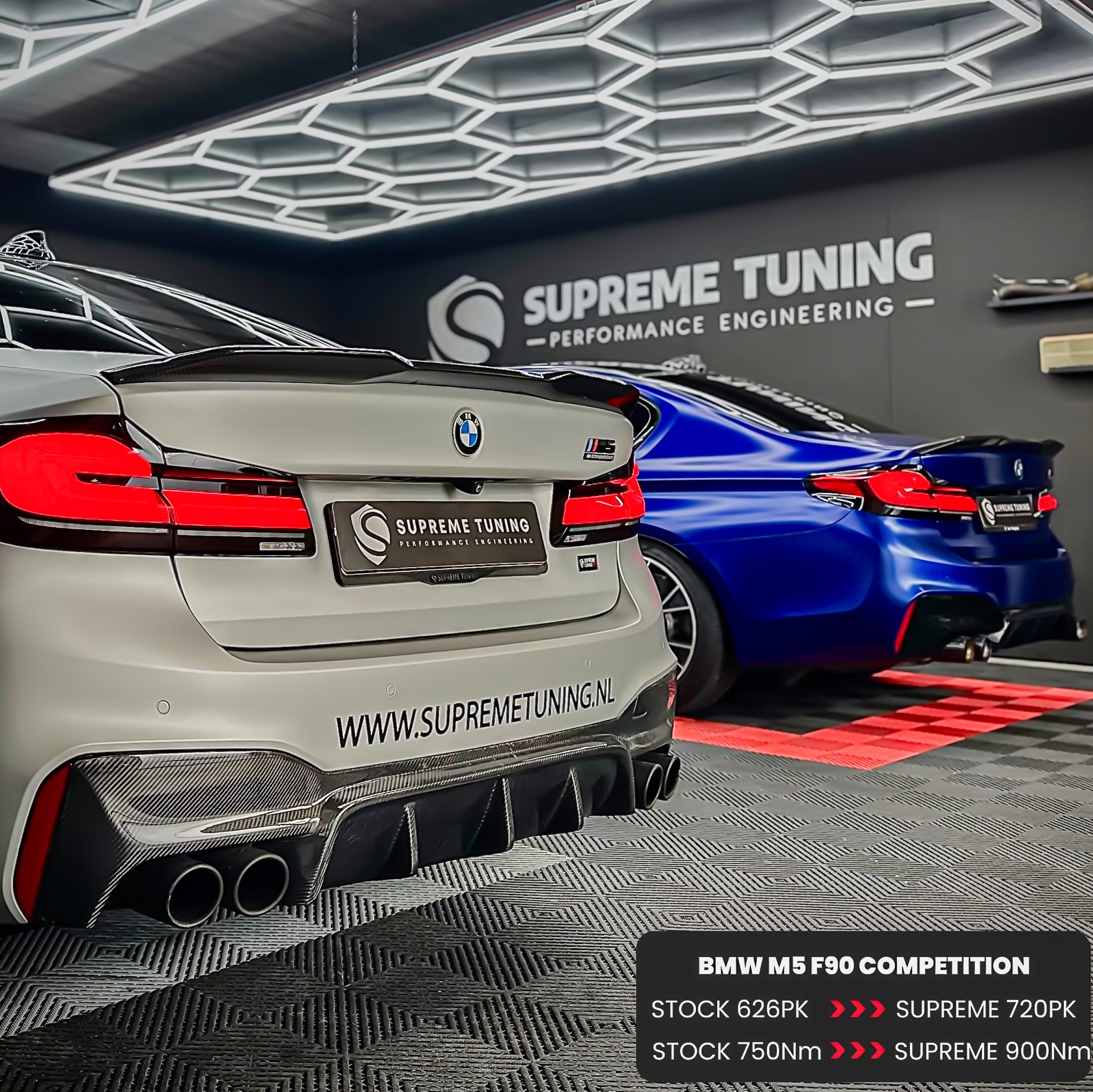 Supreme Tuning is gespecialiseerd in maatwerk chiptuning voor moderne BMW’s (F- en G-serie), van 3- en 5-Serie tot M-modellen (ons paradepaard, de M5 Competition F90, heeft 1000pk) en hybrides zoals 320e, 330e, 520e, 530e en X5 45e.